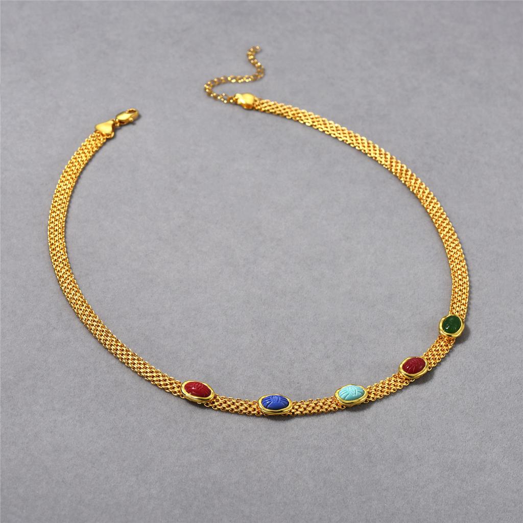 Premium Metal Copper Plated 18K Real Gold Inlaid Colorful Gemstone Clavicle Chain Niche Light Luxury Wide Necklace