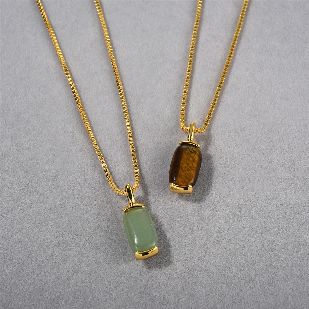 Simple Temperament Versatile Brass Plated 18K Real Gold Chain Green Dongling Tiger'S Eye Stone Pendant Collarbone Chain Sweater Chain Women