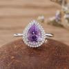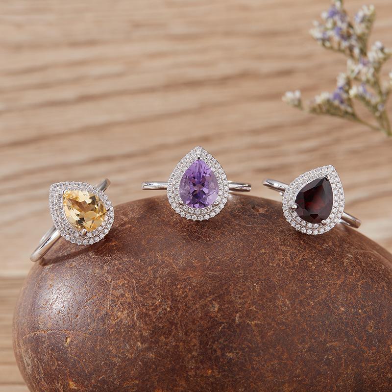 Droplet-Shaped Natural Topaz Citrine Amethyst Ring Women'S S925 Sterling Silver Colored Treasure Jewelry Index Finger Ring Earrings