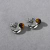 High-End Minimalist Metal Crescent Inlaid Tiger'S Eye Earrings S925 Silver Needle Stud Earrings Niche Temperament Earrings