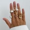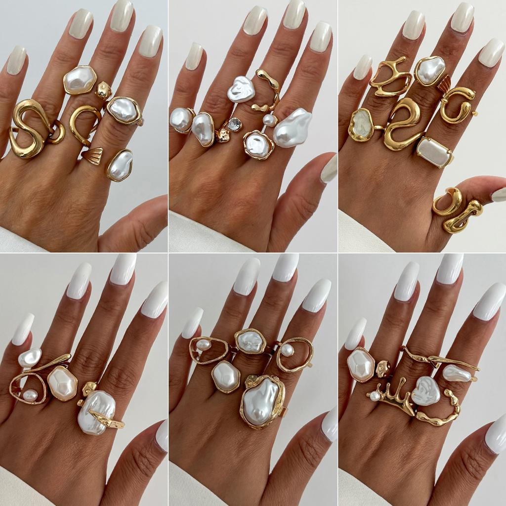 Design Sense Liquid Metal Glossy Ring Set, Baroque Imitation Pearl Open Ring