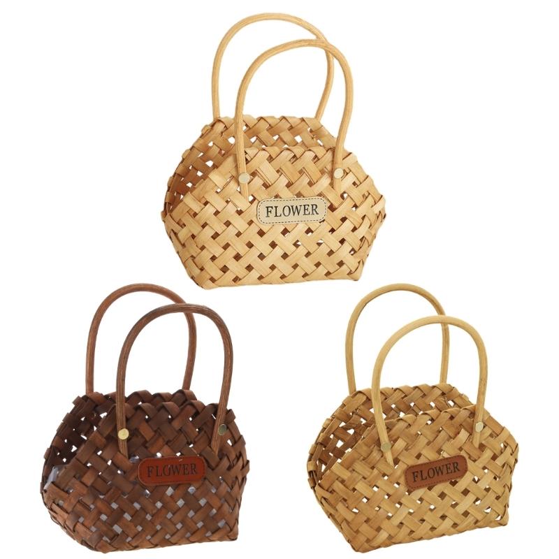 Hand-Woven Wood Flower Basket for Teacher's Day and Mother Day Online Celebrity Posing Props Portable Gift Basket