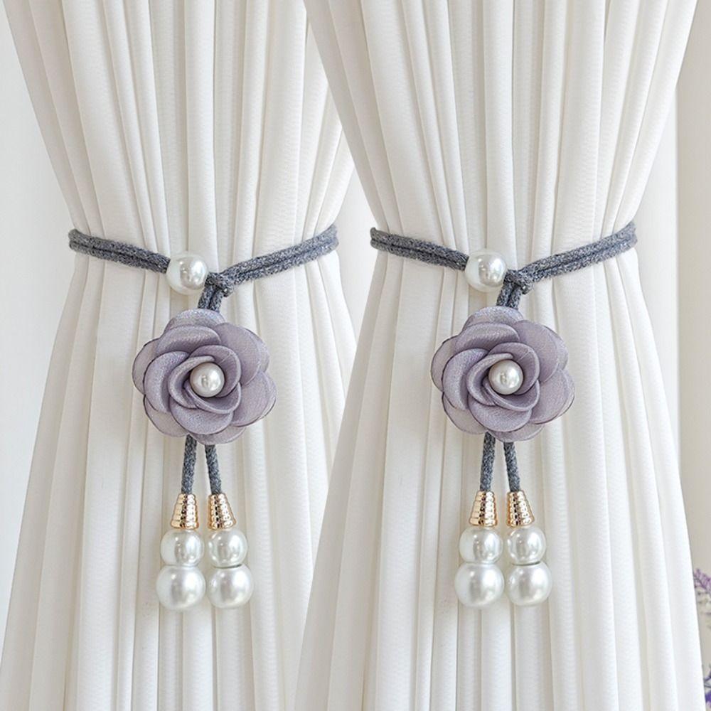 2PCS Adjustable Pearl Curtain Buckle Beautifully Curtains Tie Rope Camellia Curtain Tieback Home