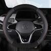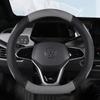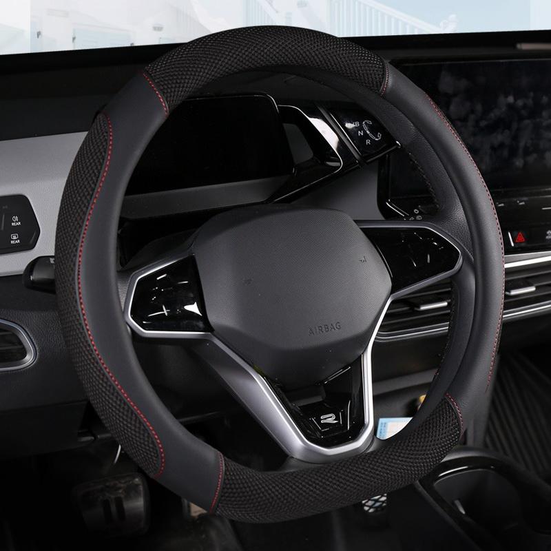 D-Shape Car Steering Wheel Cover Ice Silk Spliced Leather Steering Wheel Cover Fits 14.5-15in Diameter Four-season Universal