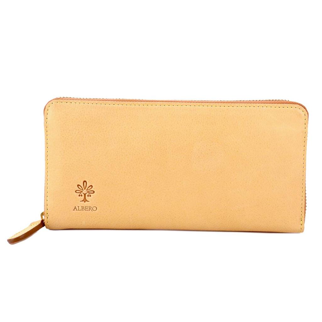 Albero Women's Genuine Leather Long Wallet with Zipper Closure, Natural Color, 5365, AL-5365-20