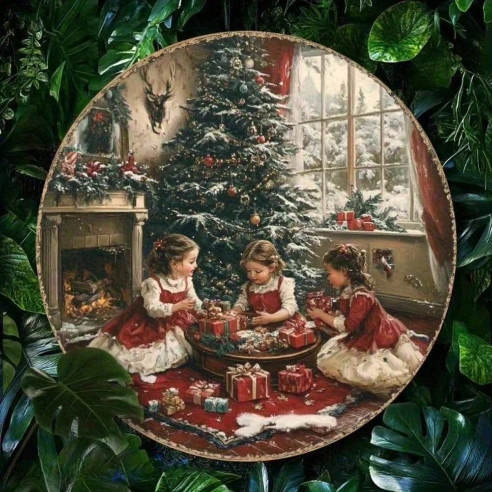 Vintage Christmas Circular Wall Tin Sign Retro Metal Poster Home Kitchen Decor