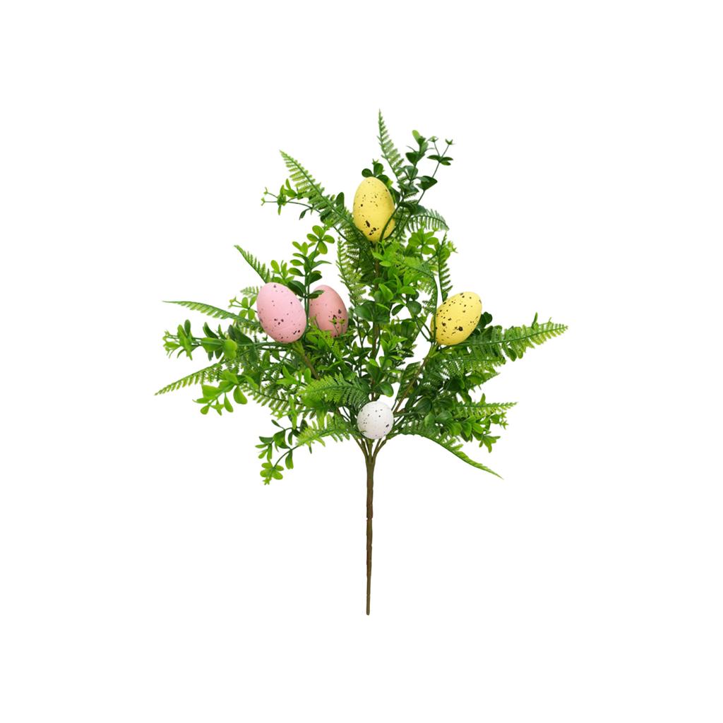 Easter Egg Branch With Foam Speckled Eggs, Festive Green Plant Decoration, Artificial Single Egg Branch.