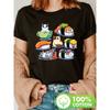 Sushi Anime Cat Print T-Shirt, Short Sleeve Crew Neck Casual Top for Summer & Spring, Women'S Clothing