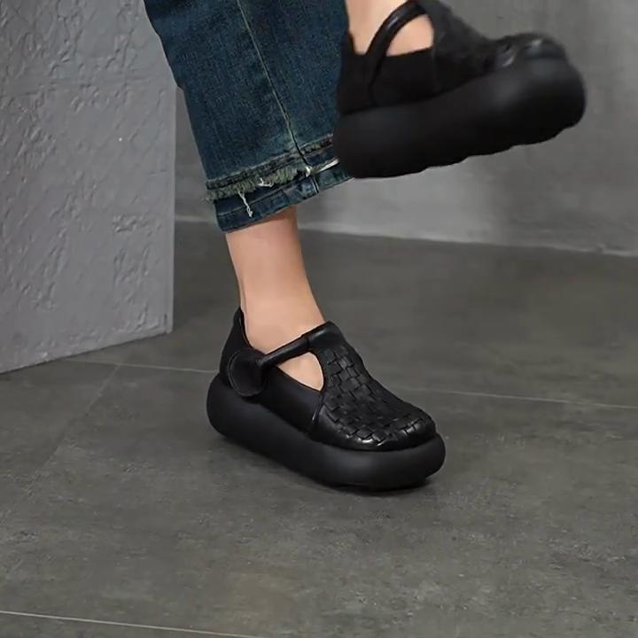 Johnature Hand Woven Genuine Leather Women's Shoes Comfortable Versatile Thick Soled Sandals