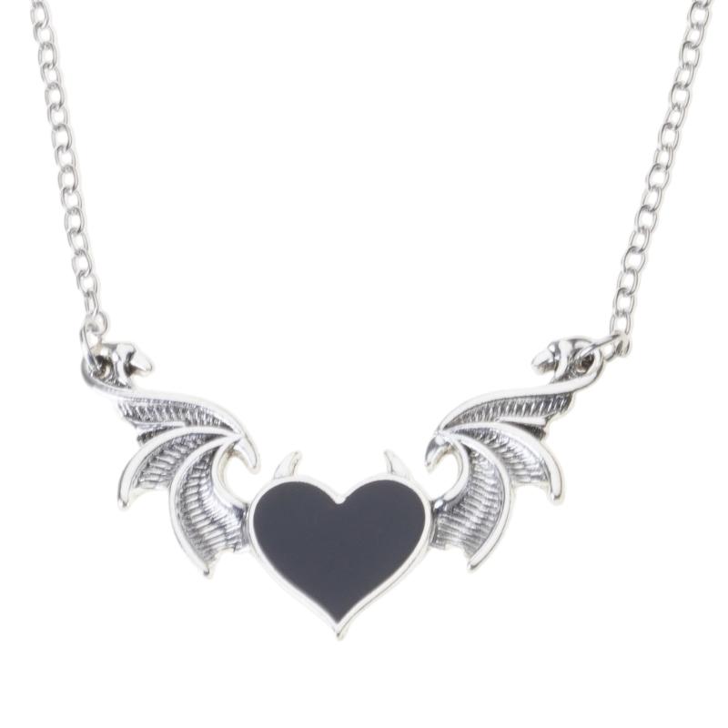 Devil Wing Heart Necklace Retro Hip Hop Style Pendant for Birthdays Anniversary Christmas Gothic Cosplay Punk Costume