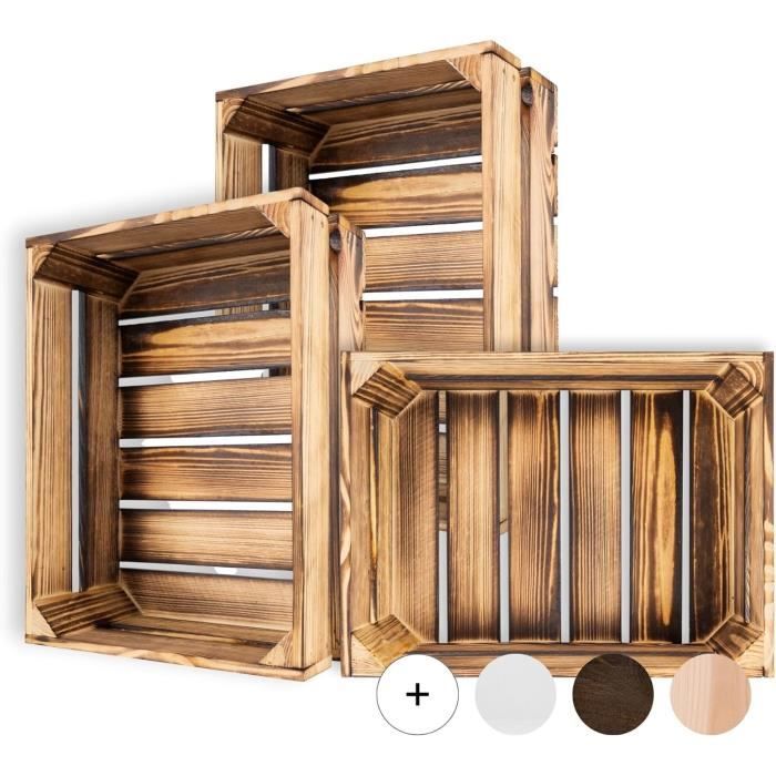 Creative Deco Lot de 3 Caisse en Bois Flammé | 40 x 30 x 15 cm | Caisse Rangement Bois | Caisse en Bois Vintage | Cagette en Bois