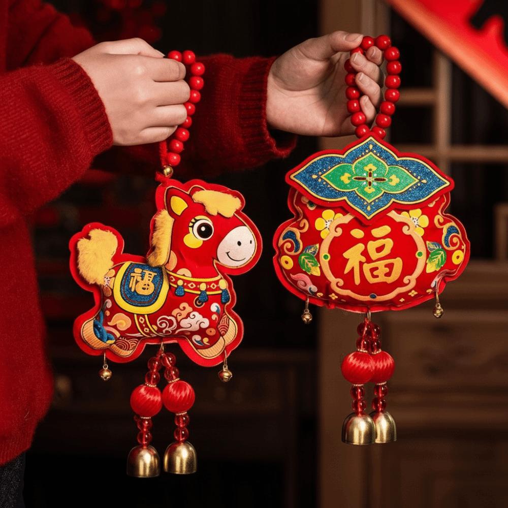 --2026 Year of the Horse Themed Design for Festive Charm:These decorative hangings are exclusively designed around the 2026 Year of the Horse, featuring vivid horse motifs such as cartoon-style horses, traditional paper-cutting horse patterns, or horses paired with classic New Year elements like red lanterns and gilded ingots. The integration of zodiac themes makes the hangings a perfect symbol of the Year of the Horse, infusing your space with strong New Year vibes.