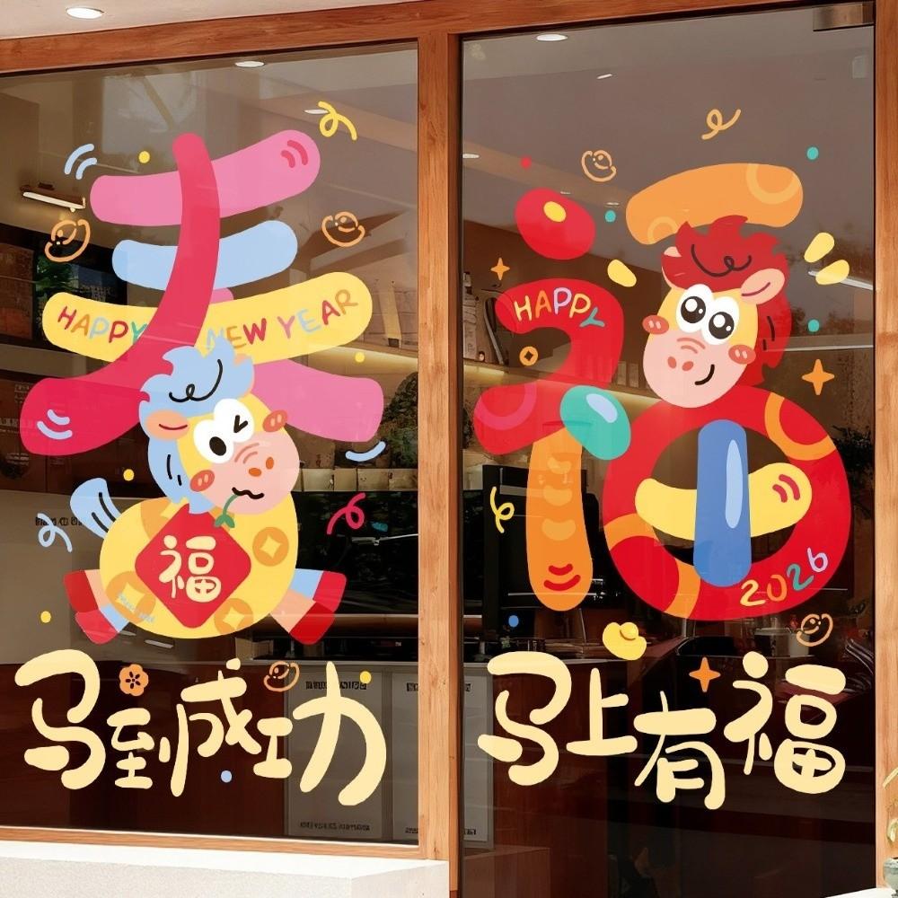1 Pair Lucky Letters Horse Year Window Stickers Spring Festival Glass Stickers New Year's Eve