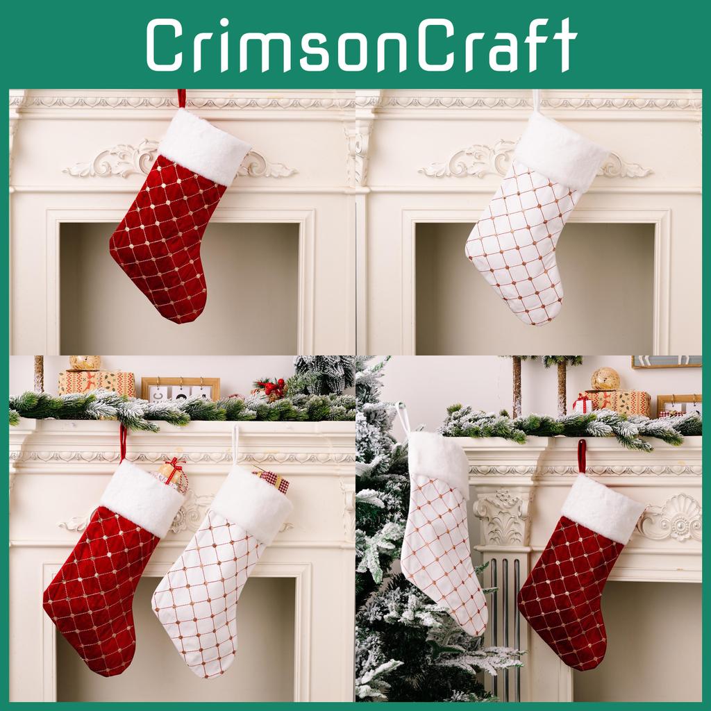 Elevate your holiday spirit with our festive Christmas stockings, designed to add a touch of warmth and cheer to your home decor this season. Crafted with a delightful combination of plush trim and sparkling accents, these stockings embrace the classic colors of red and white, embodying the essence of Christmas. Whether hung by the fireplace or displayed on a wall, they are sure to catch the eye and spark joy for all who see them.