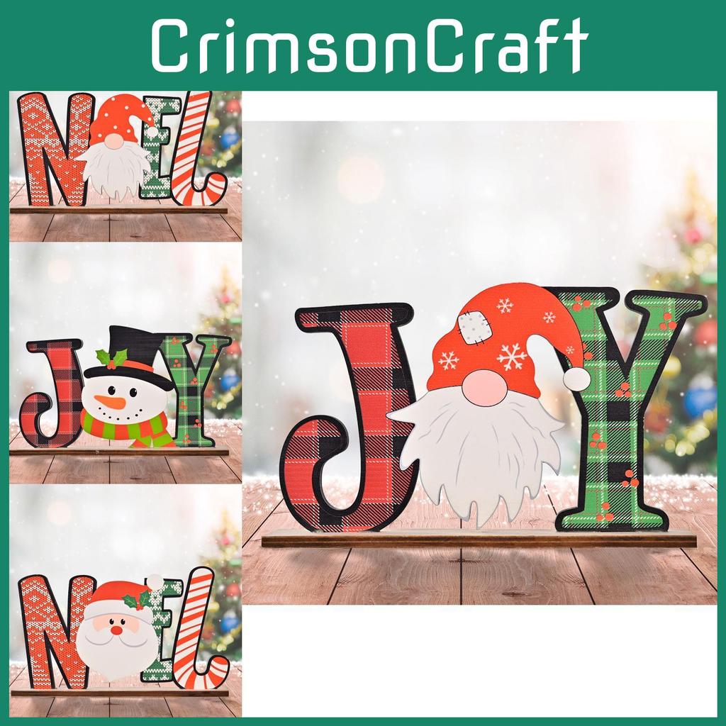 Whimsical Christmas Wooden Letter Figurines Colorful Printed Holiday Decor For Cheerful Tables
