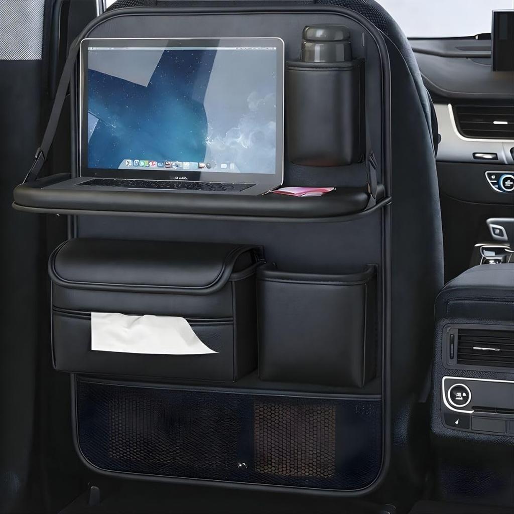 Carefully Designed Seatback Pockets: Keep your back seat tidy! Designed to meet all your needs, transforming your car's interior into a comfortable and functional space. [Smart Design] The folding table can be used for multiple purposes, such as working, eating, or letting the kids draw. When not in use, it folds up into a slim, space-saving design. [Easy Installation] Easily attaches to headrests or seats without any specialized tools. Its sleek design makes it a perfect fit for any vehicle. [Multiple Storage Pockets] From drink holders to tablet slots and tissue boxes, organize everything you need in your car, maximizing the space in your back seat. [Durable Material] Made with high-quality materials for wear resistance and durability. Its luxurious feel and resistance to deformation ensures long-lasting use. [Waterproof and Stain-Resistant] Made with high-quality materials that repel dirt and water. Easy to clean, simply wipe away any stains to protect your car seats. Take your car's interior to the next level with this organizer, perfect for your next road trip.