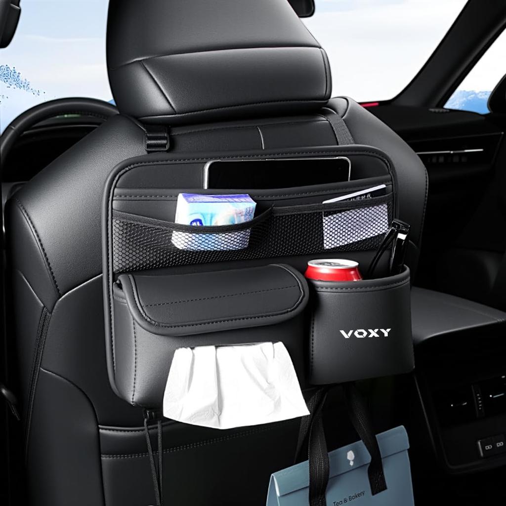 [VOXY Exclusive Logo & Short Design] This car storage pocket features the exclusive VOXY logo. Its sleek design makes it easy to match with your vehicle. Compatible Vehicles: VOXY Custom Parts Accessories. The short storage pocket design allows for easy access without hiding the original pocket behind the car seat. It doesn't take up much space in your car, allowing you to make efficient use of space.