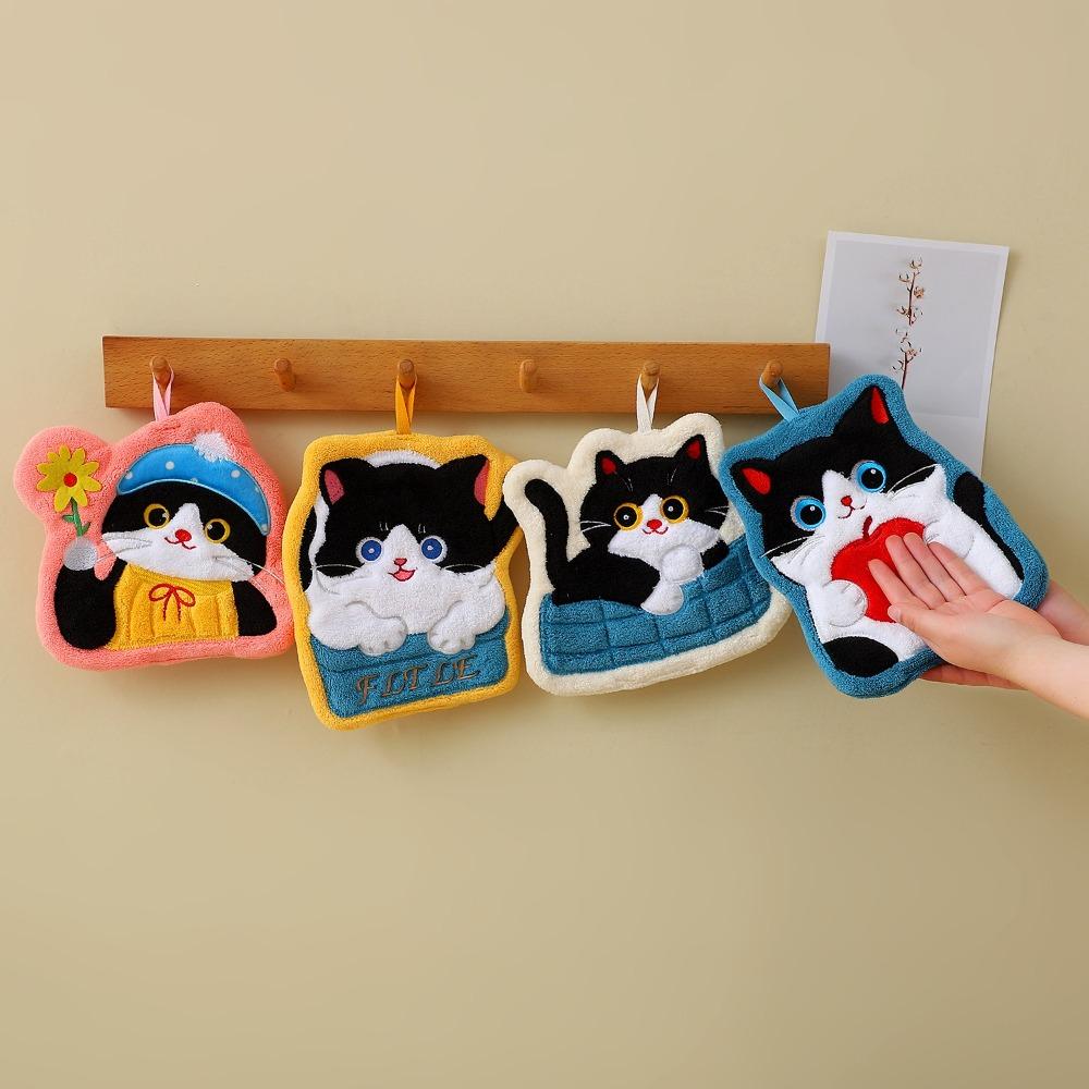 Coral Fleece Hand Towel Cute Cat Bathroom Kerchief Durable Washcloth