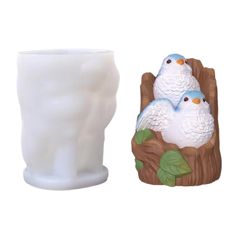 Food grade silicone mould intricate tree stump and sparrow detail, offering sturdy, high performances for baking and crafting projects.