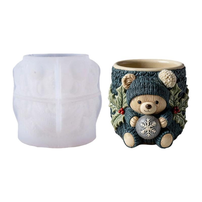 Flexible Silicone Bear Planter Mold Smooth Surfaces Easy Demolding For Resin Concrete Cement Crafts Decorative Container DIY Art Project