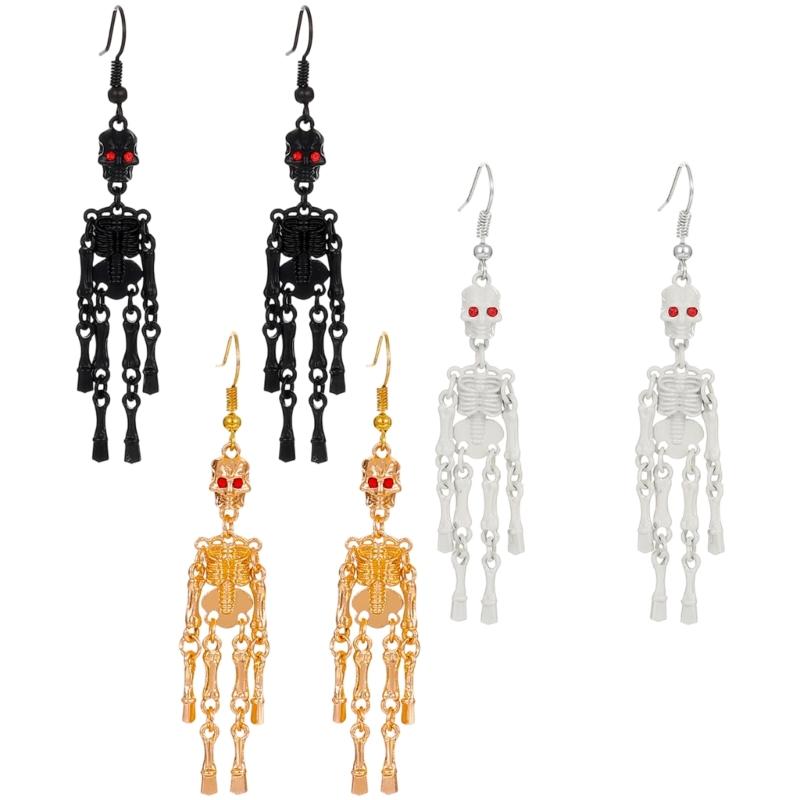 3Pairs Dark Halloweens Skull Dangle Earrings Gothic Style Jewelry for Women Comfortable Resin Goth Accessories