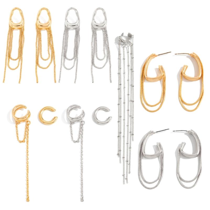 Crafted from alloy, iron, and copper plated iron chain, it weighs just 8g for comfortable, all day wear without ear piercing, ensuring use as clip on earrings.