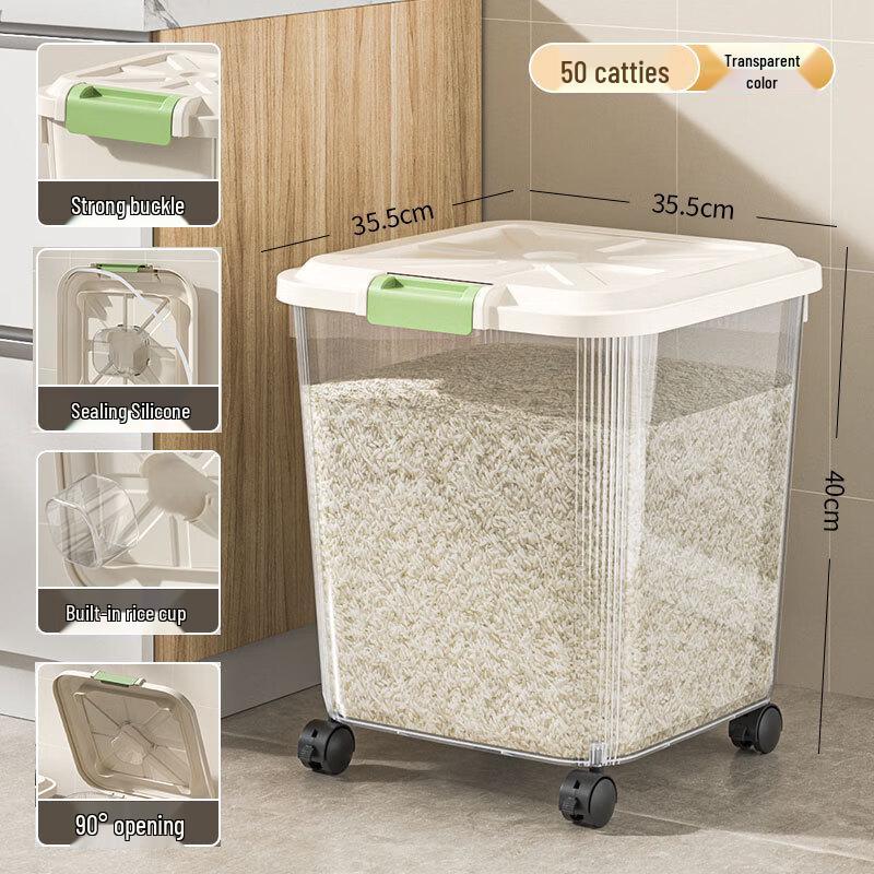 ModelTransparent, 25kg Capacity with Wheels & Measuring Cup