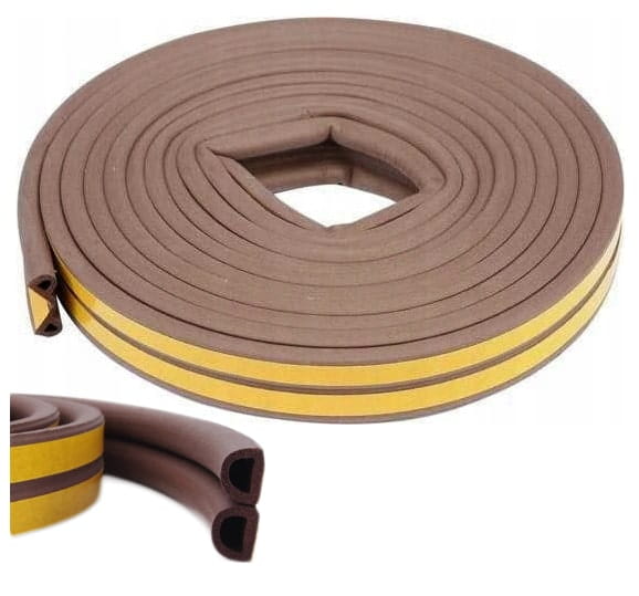 Rubber Seal for Windows and Doors, D Profile, 2x3 M, Brown