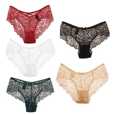 4Pcs/set Sexy Lace Panties Low-Rise Briefs Silk Ladies Cotton Sexy Transparent Lingerie