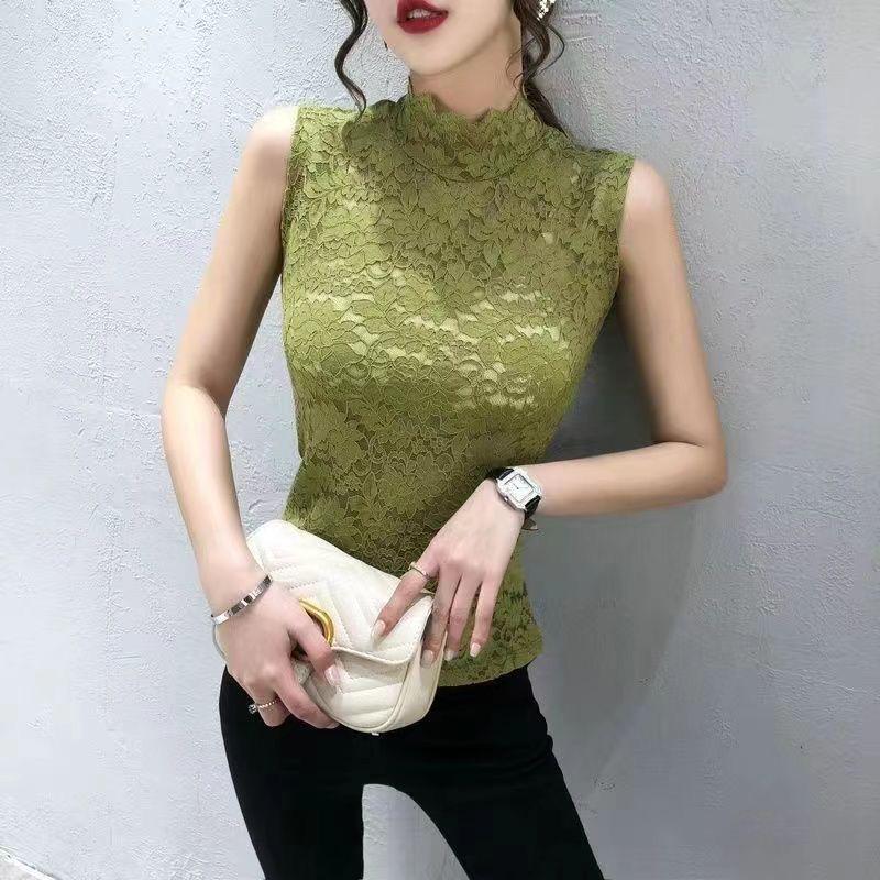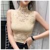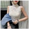 Women's Sleeveless High Collar Lace Shirt with Faux Collar