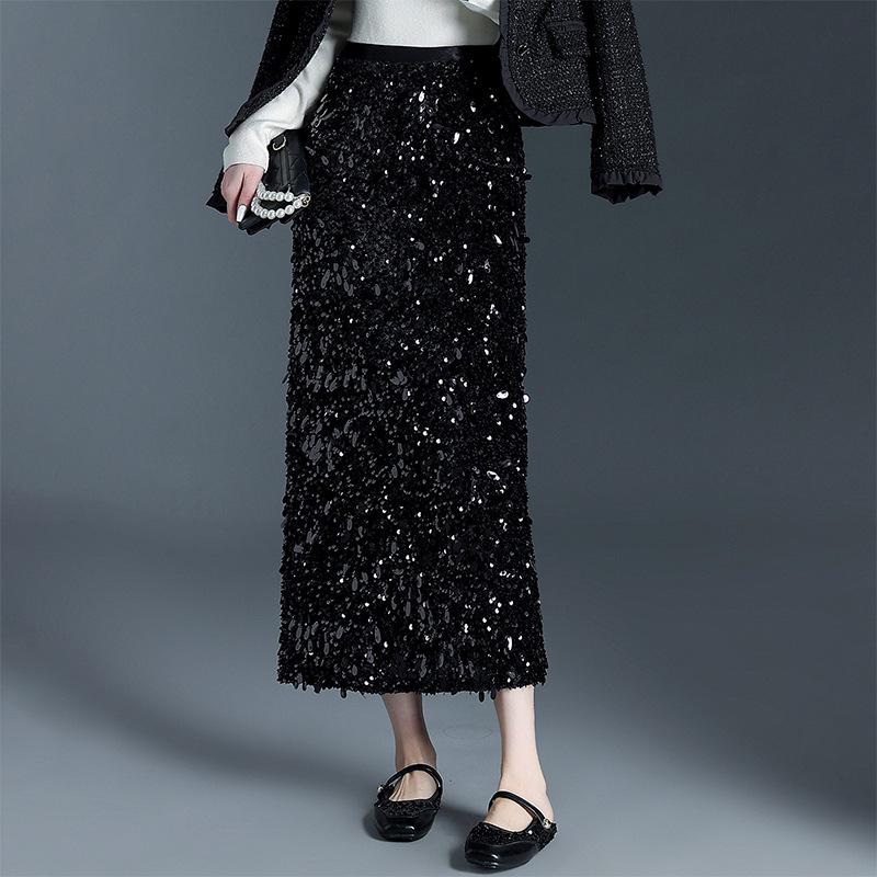 Winter Women's High-Waisted Velvet Sequin Bodycon Skirt - Stylish, Slimming, and Hip-Covering Design