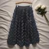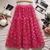 French A-Line High Waist Skirt with 3D Flowers - Spring/Winter Collection