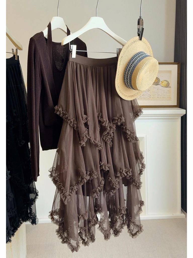 Women's Designer Irregular A-line Ruffled Mesh Skirt - Spring/Summer Collection