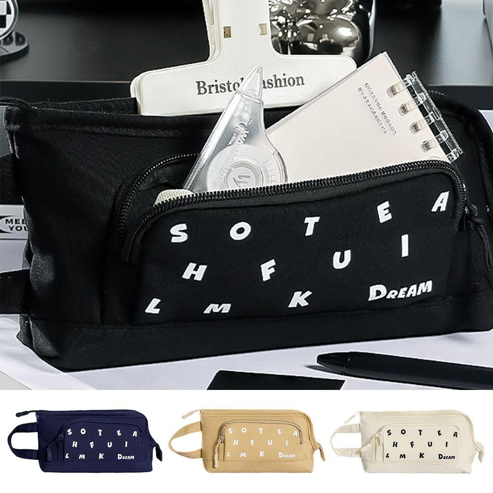 L-shape Large Opening Pen Bag Handheld Stationery Pouch Multi-functional Pencil Case Students Gift