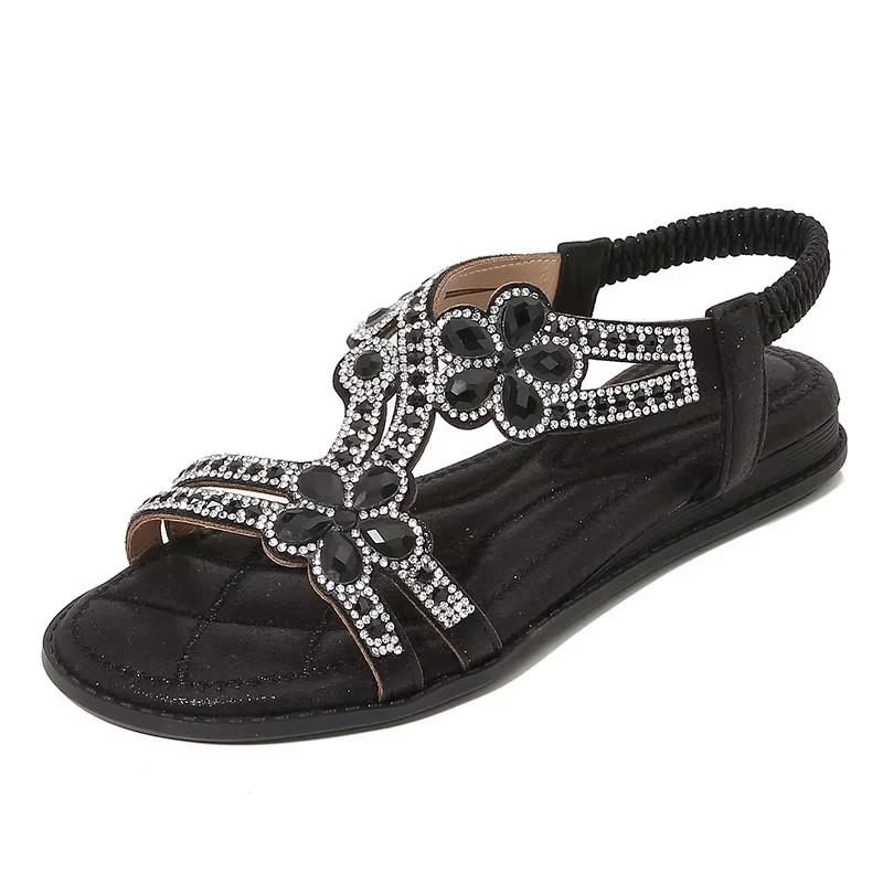 2026 Women Flat Rhinestone Sandals Bohemian Sandals Summer New Non Slip BeachElastic Low Heels Roman Sandals