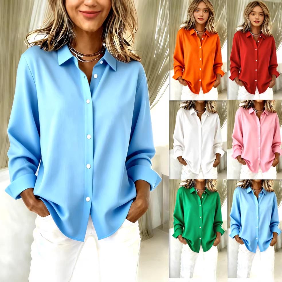 This elegant long-sleeved shirt is a perfect addition to your wardrobe for the summer of 2026. Crafted from high-quality polyester, the shirt offers a comfortable and breathable fit for all-day wear. It features a tailored neckline that adds a touch of sophistication and a simple print decoration that enhances its understated charm. The solid color design makes it versatile and easy to pair with a variety of outfits, ensuring you look effortlessly stylish for any occasion.
