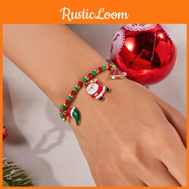 Christmas Bead Bracelet For Women With Santa Snowman Charms In Festive Gift Box