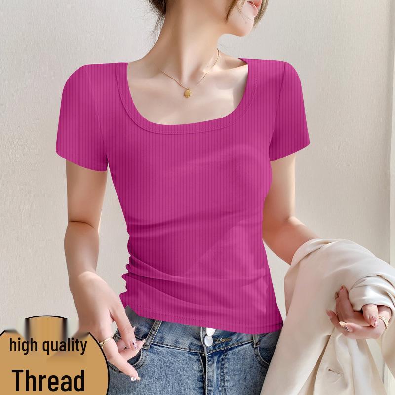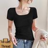 Women's Short-Sleeve Square Neck Ribbed T-Shirt – Minimalist Trendy Style