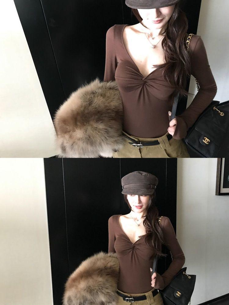This chic top is designed to enhance your style and silhouette during the cooler months of autumn and winter. Crafted from high-quality modal material, it offers a soft and comfortable fit that feels luxurious against the skin. The elegant V-neckline adds a touch of sophistication, while the long sleeves provide warmth without compromising on style. This slimming top is perfect for a night out or a casual day, as it effortlessly combines comfort with a sexy, fashionable look.