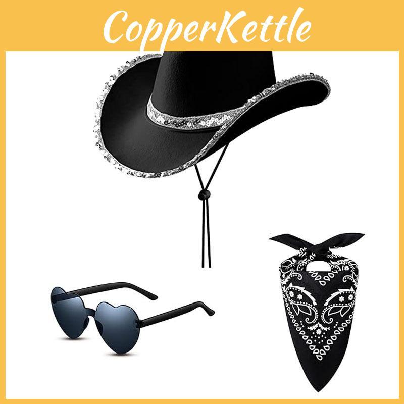 Makeup Costume Prop Set With Cowgirl Cowboy Hat Glasses And Bandana For Party Costumes