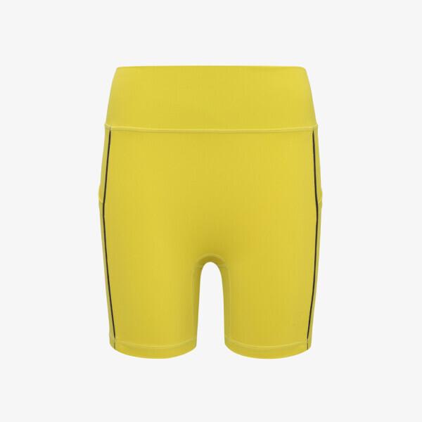 The FILA 4-Pocket Biker Shorts FS253IP02F003_734 is women's sportswear characterized by a high-waisted design. This product provides stable wearing comfort by firmly supporting the abdomen, and its biker shorts form gives a visual effect of longer, slimmer legs. There are pockets at the back of the waist and both sides for conveniently storing smartphones and belongings during exercise. Made from functional materials suitable for sports activities, it emphasizes a comfortable fit similar to leggings. The color is provided as Green-yellow.