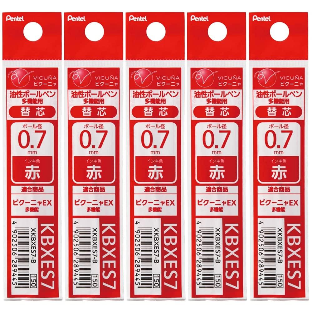 Pentel Vicuna Ballpoint Pen Refills Fine Set of 5 (Red), 0.7mm, Point, XKBXES7-B,