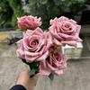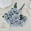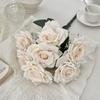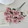 7-Head Ruffled Cappuccino Rose Bouquet - Vintage Artificial Flowers for Home or Wedding Decor