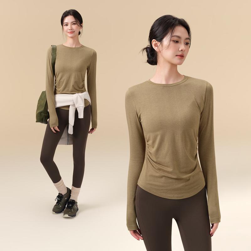 ACKDCS Women's Merino Wool Pleated Waist Sports Top