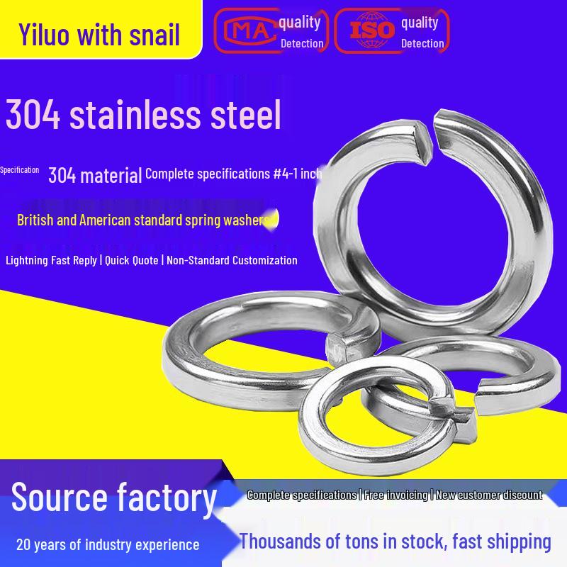304 Stainless Steel Spring Washer - US/UK Standard, Open Design, Sizes 4# To 1 Inch