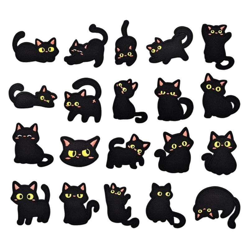 20PCS Black Cats Clothes Sticker Embroidery Patches No Sewing Fabric Stickers For Kids Clothing Backpacks Jackets Repairing
