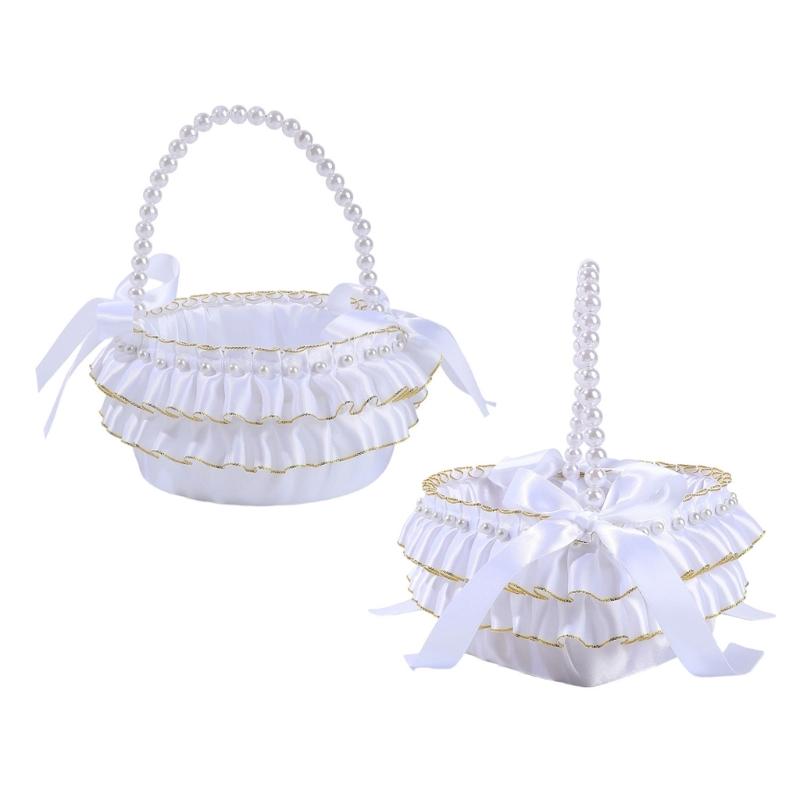 Decorative Pearls Embellished Storage Basket With Golden Edges for Wedding Reception Party Decorations
