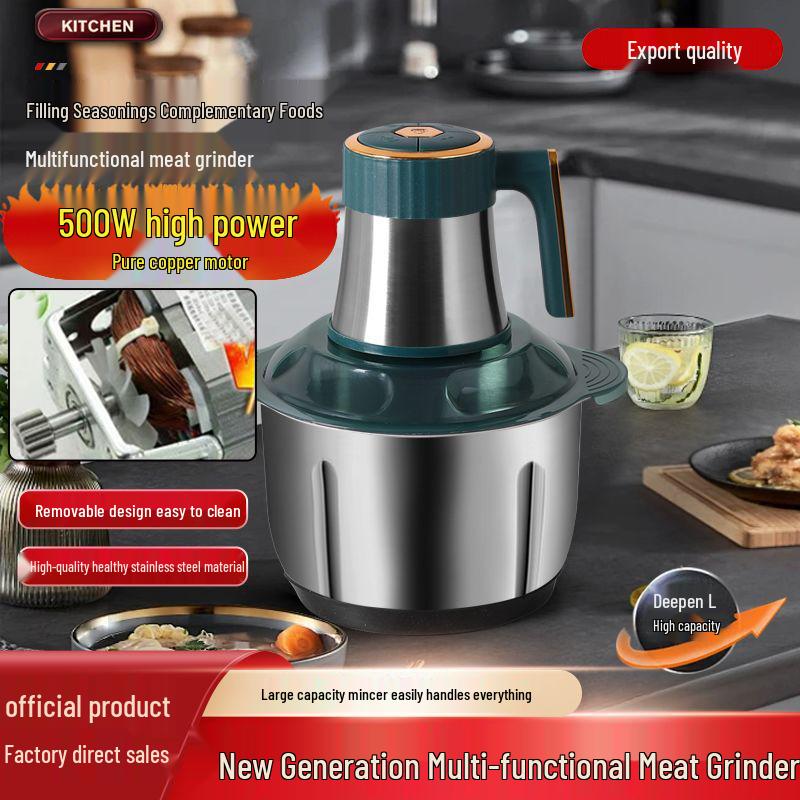 Stainless Steel Electric Meat Grinder and Multi-Functional Food Processor: Mixer, Dough Kneader, Juice Extractor, and High-Power Meat Mincer