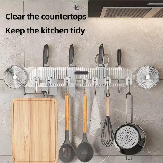 Multi-Functional Adjustable Curved Hooks: Large curved hooks securely hold kitchen spatulas, bathroom towels, and more; adjustable spacing fits various utensil sizes for flexible storage.