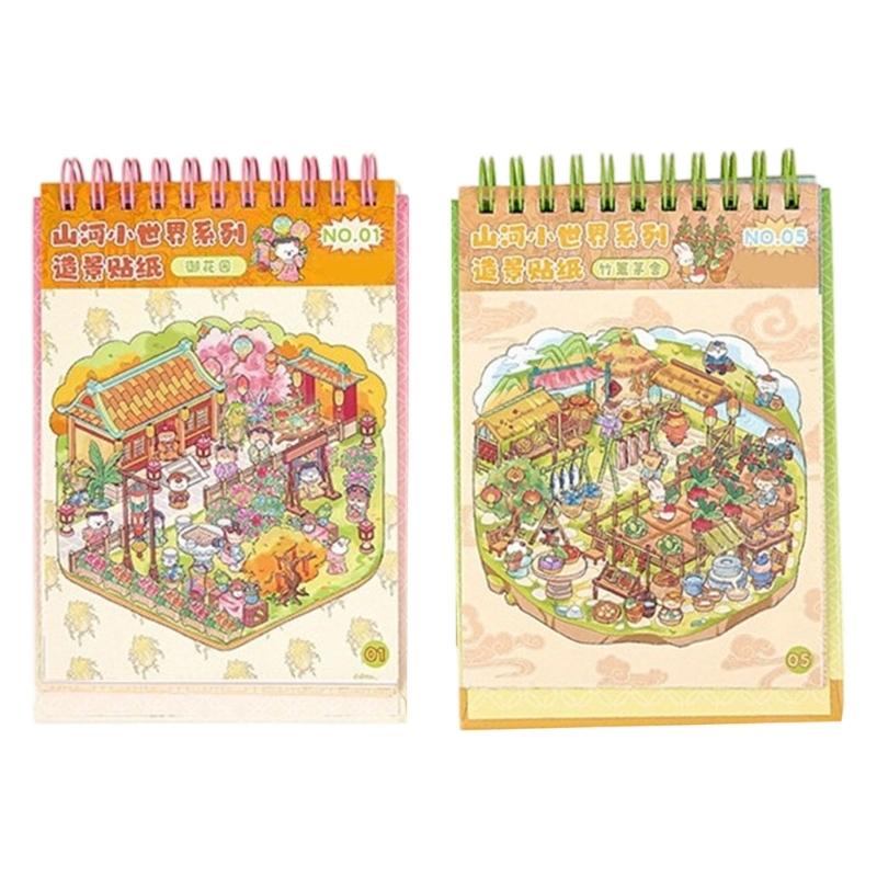 DIY Decorative Sticker Chinoiserie Theme Landscape Sticker Book Scene Sticker Journal Supplies Gift for Kid Child